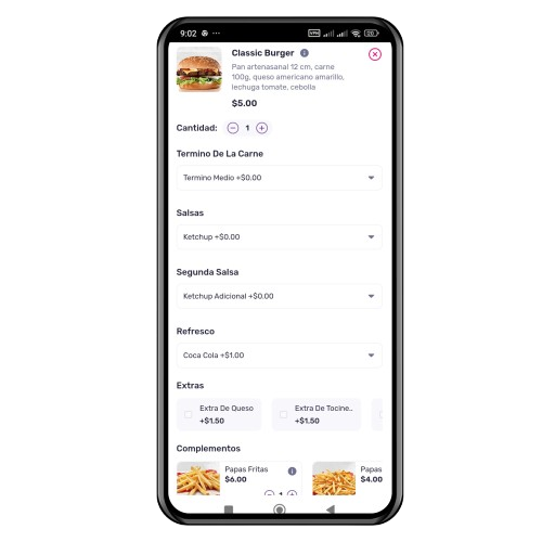 La función de agregar complementos y extras en nuestro software permite personalizar pedidos y mejorar la experiencia del cliente. Ofrece opciones de complementos (salsas, ingredientes extra), una interfaz intuitiva con botones de selección, y visualización de precios claros. Los usuarios pueden ajustar cantidades, ver descripciones de los complementos y recibir sugerencias personalizadas. Los complementos se muestran en el carrito con el costo total actualizado en tiempo real. Además, permite filtrar por dietas específicas (vegetariana y vegana) y se integra con el menú de forma clara. Esta funcionalidad no solo aumenta la satisfacción del cliente, sino también el ticket promedio de ventas.